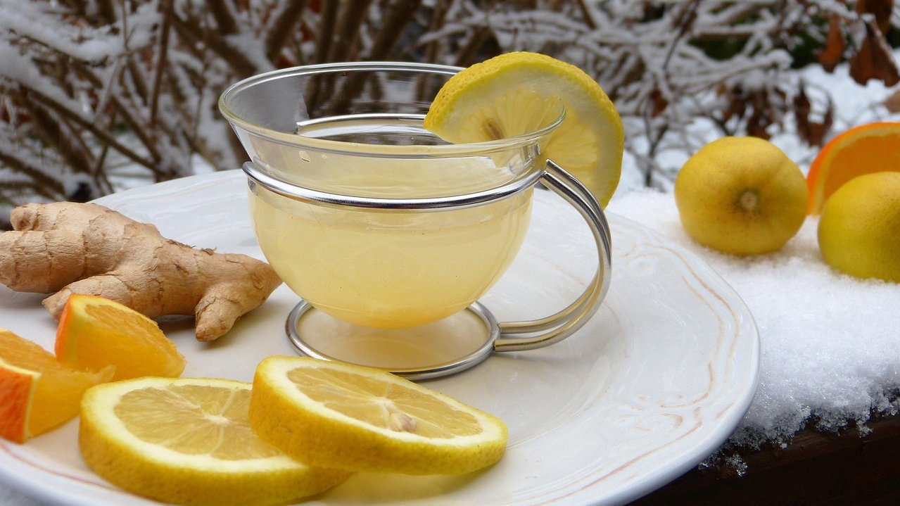3 EL frischen feingeriebenen Ingwer in 1 Liter Wasser einige Minuten aufkochen lassen. Etwas abkühlen lassen, dann 3 EL Honig, 3 EL Zitronen- oder Orangensaft und 1 Prise Pfeffer zugeben.